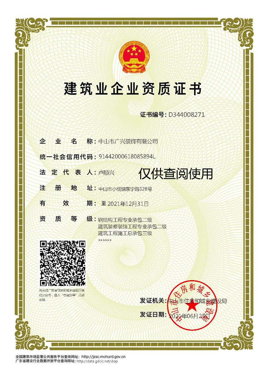 中山市廣興裝飾有限公司創(chuàng)建于1985年,是一家集鋼結(jié)構(gòu)、建筑、幕墻、裝修裝飾、鋁合金門窗專業(yè)的設(shè)計、加工及施工安裝為一體的大型綜合性建筑企業(yè)。公司總部位于中山市小欖鎮(zhèn),在中山和珠海均建有生產(chǎn)加工基地,總占地面積60000多平方米。